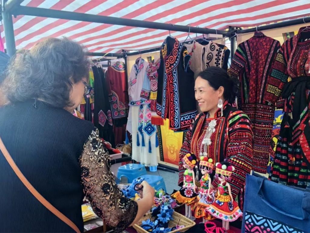 图为随时装周开幕同期举行的“非遗雅集·好物聚楚雄”展示展销活动。(新华社)