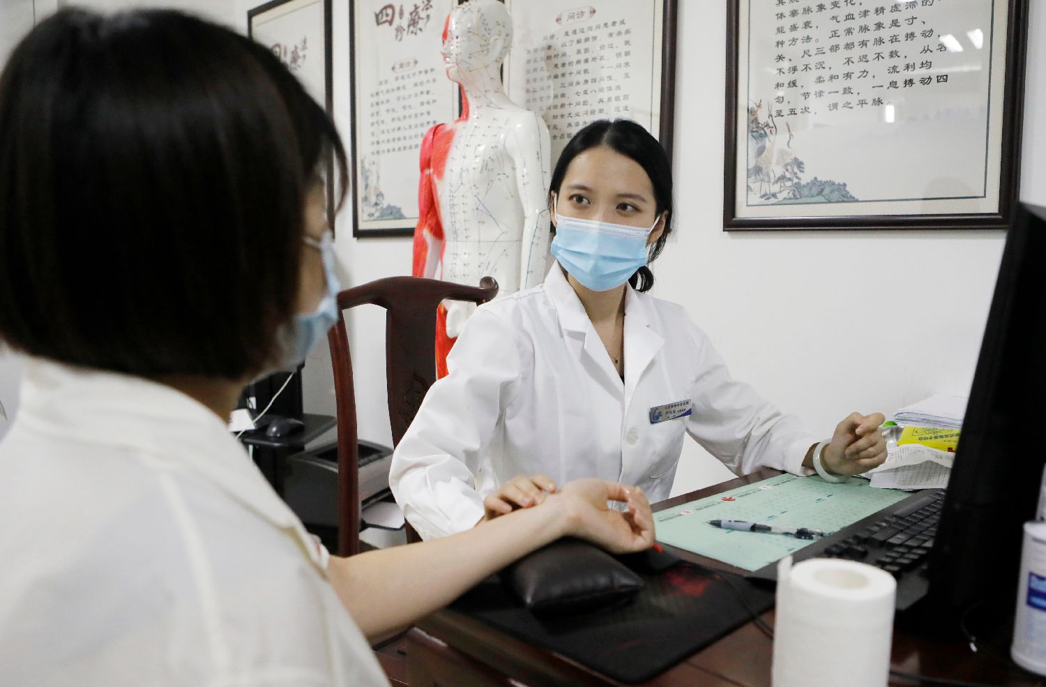 2021年8月28日,来自马来西亚的中医医生严利依正在北京鼓楼中医院内帮患者问诊。 高中毕业后,19岁的马来西亚女孩严利依只身一人来到中国,开启中医学习之旅,10年磨一剑,学古汉语,研究中医经典,跟师出诊,拜师学艺,如今能讲一口流利的普通话,把脉、针灸、开方,中医功夫样样能上手。(亚太快讯)