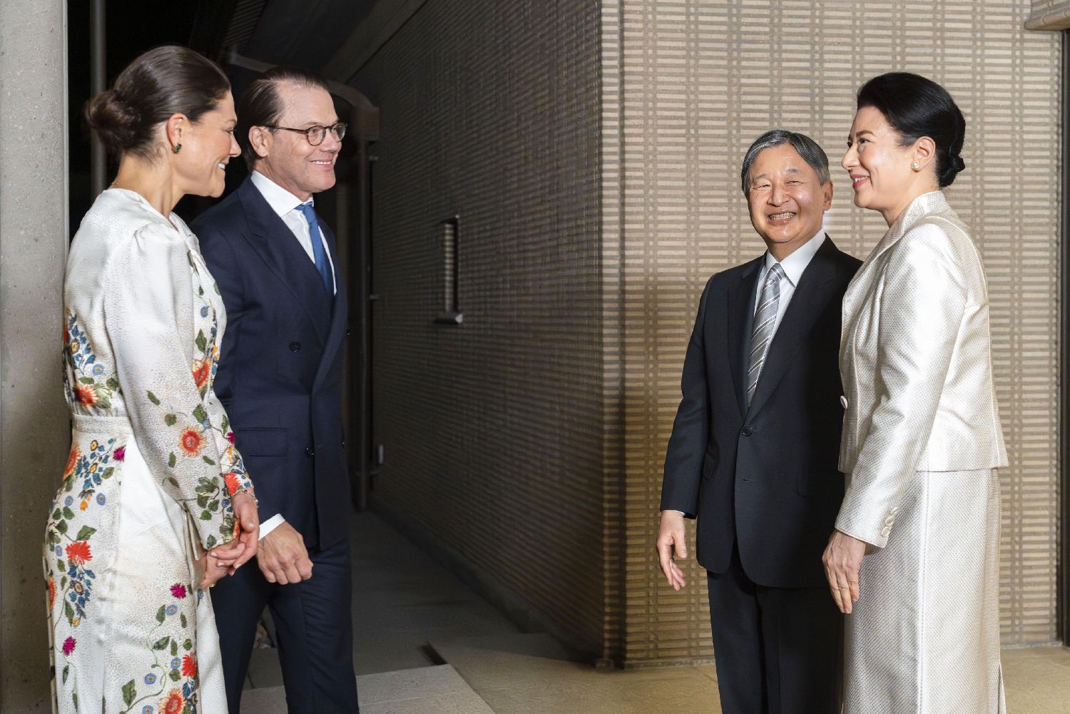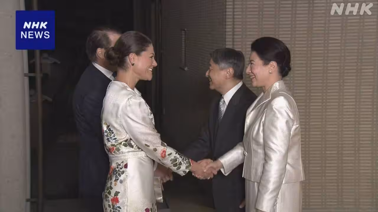 当天晚上7点左右,天皇和皇后在皇居御所门前迎接到访的瑞典维多利亚王储及其丈夫丹尼尔王子,并在御所内举行了晚宴。据悉,王储夫妇停留约三个小时,期间天皇与皇后之女爱子公主也加入了宴会。为配合大阪・关西世博会的举办,天皇陛下先后会见了来自28个国家的总统、王室成员等贵宾,并与皇后共同举办晚宴,以加深友好关系。其中,在5月会见保加利亚总统时,天皇曾分享自己年少时用菌种制作酸奶的经历;在6月与德国总统会见时,则就战后80周年之际“将记忆传承给下一代的重要性”进行了交流。