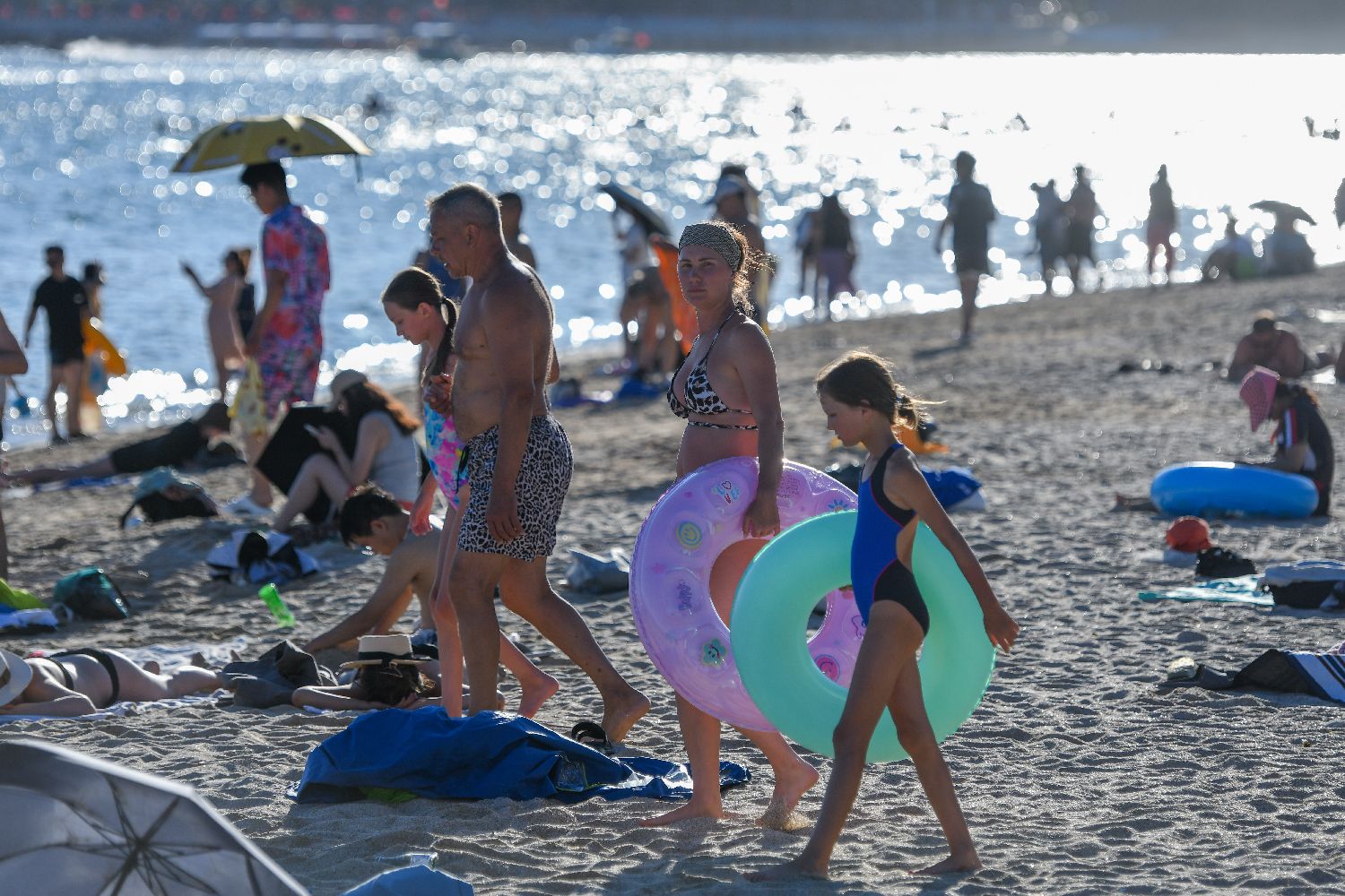 10月3日,中国国庆假期第三天,海南三亚大东海旅游区吸引中外游客在碧海蓝天间乐享惬意假期。图为在三亚大东海旅游区游玩的外籍游客。(图/中新社)