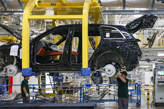 图为4月9日,位于江苏常州的理想汽车智能制造基地生产车间内的忙碌景象。(图/中新社资料图)