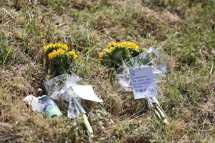 10月18日,台北市万华区马场町纪念公园的土丘上,有落款深圳、台北民众向英烈敬献的鲜花。(图/中新社)