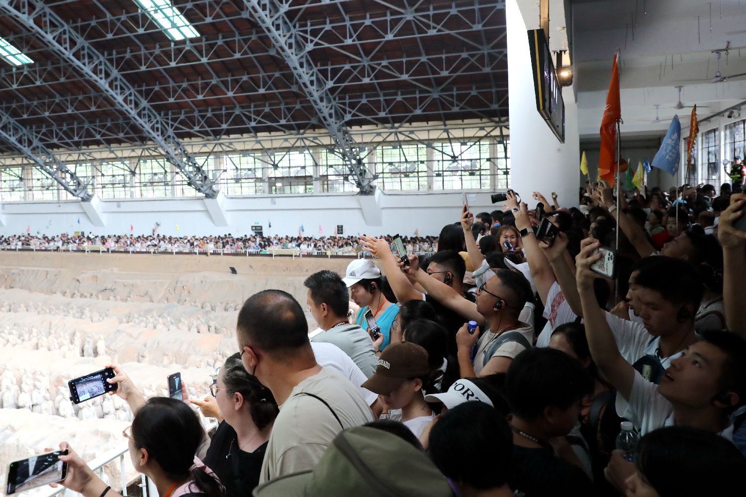 7月15日,陕西西安,秦始皇帝陵博物院迎来暑期客流高峰。图为游客在兵马俑一号坑参观。(图/中新社)