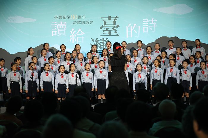 当地时间10月22日晚,“读给台湾的诗——台湾光复80周年诗歌朗诵会”在台北市中山堂举行。图为新北市中和小学合唱团带来歌曲表演。(图/中新社)