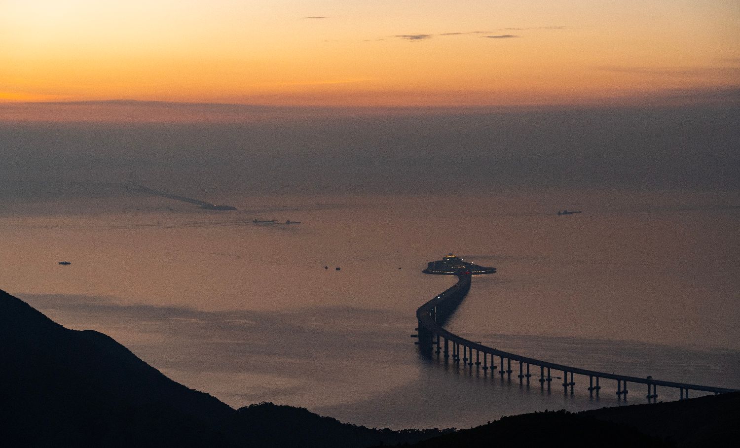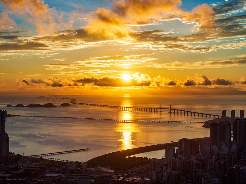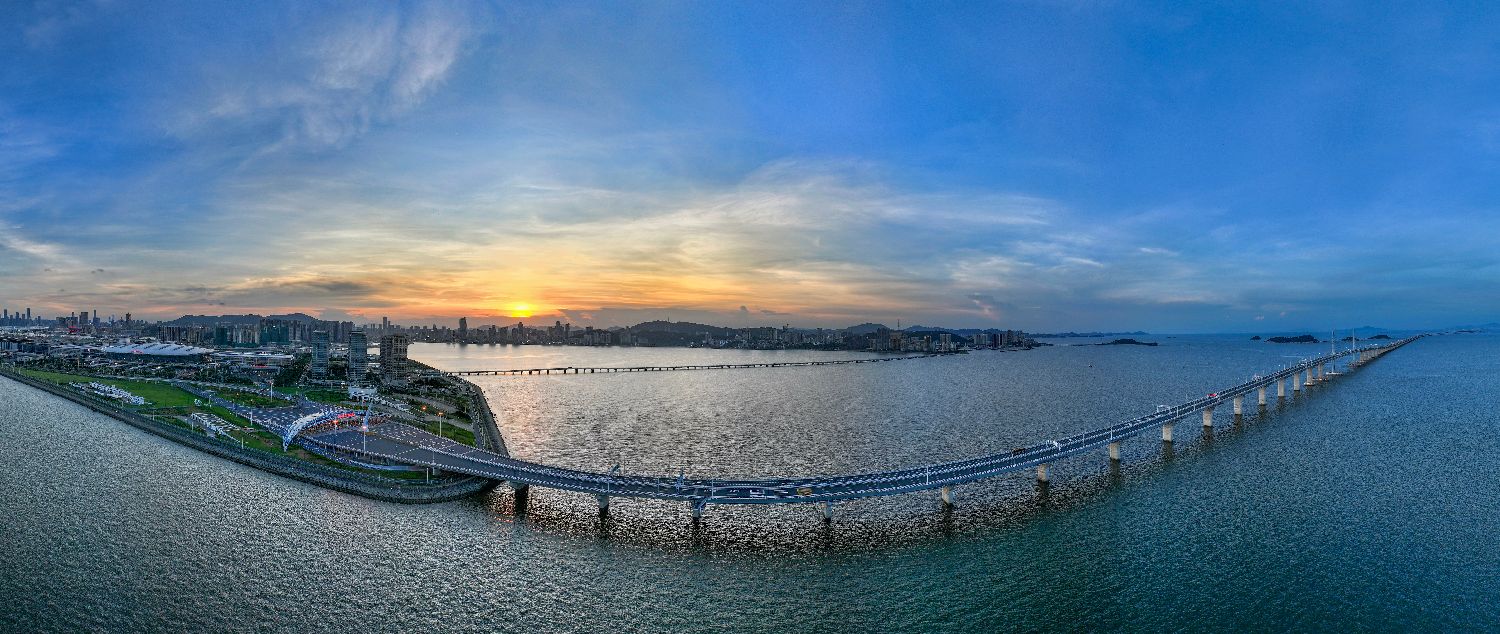 2025年8月22日,航拍港珠澳大桥日出。(CFP)