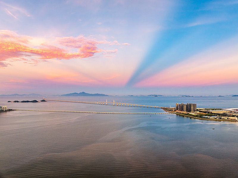 2025年9月3日,广东珠海,反云隙光下的港珠澳大桥。(CFP)