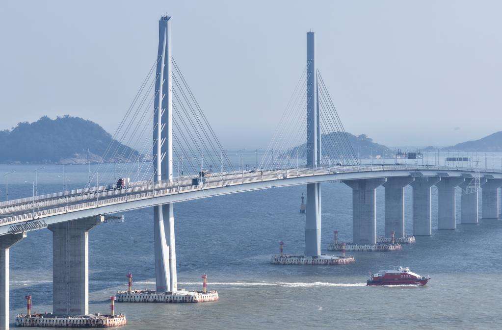2025年10月19日,客船驶过港珠澳大桥九洲航道桥。(新华社)