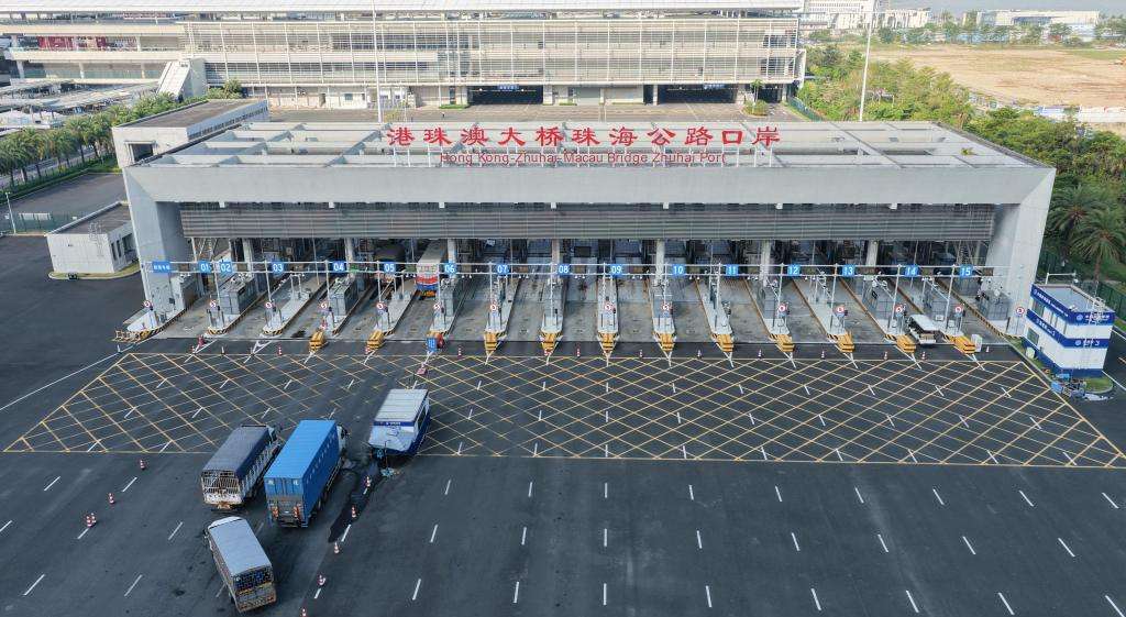 2025年10月19日,车辆准备通过港珠澳大桥珠海公路口岸边检站。(新华社)