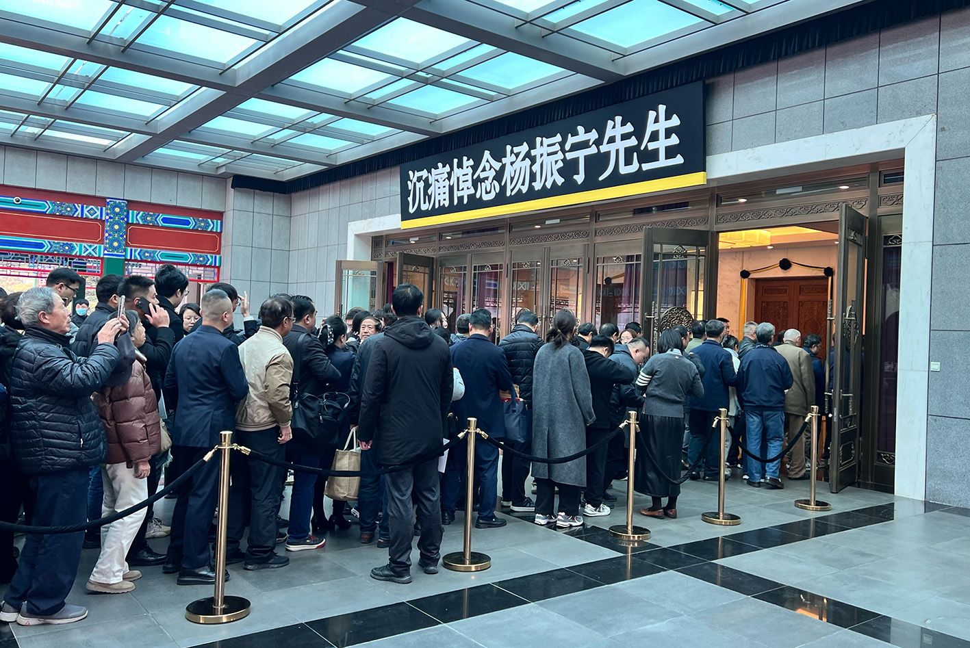 10月24日上午,杨振宁遗体告别仪式在北京八宝山殡仪馆大礼堂举行。中国科学院、清华大学毕业生等社会各界人士前往八宝山为其送别。(中新社)