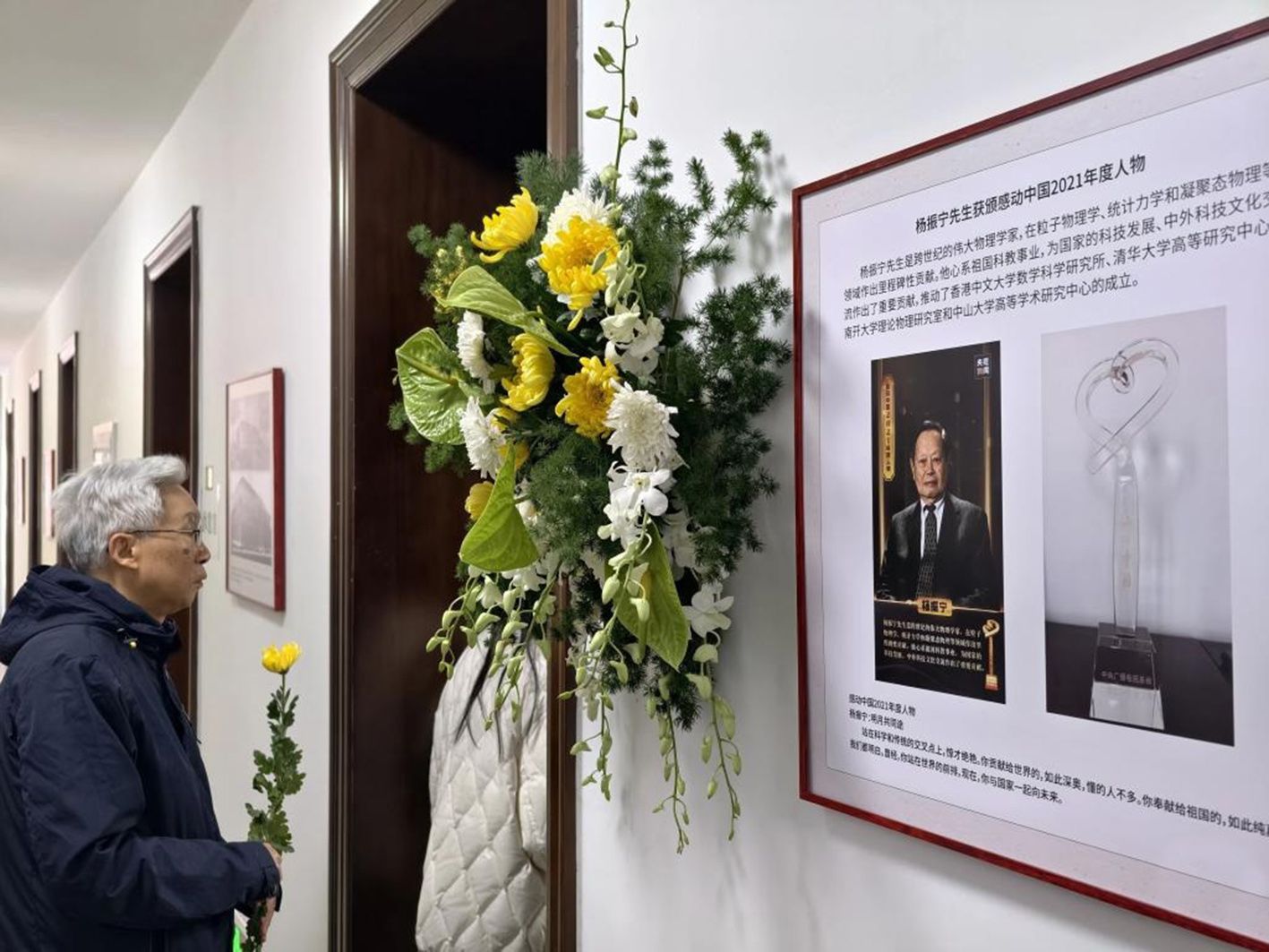 10月19日,人们到清华大学高等研究院悼念杨振宁。为缅怀杨振宁,清华大学高等研究院设立缅怀室,接受校内师生及社会相关人士吊唁。(新华社)