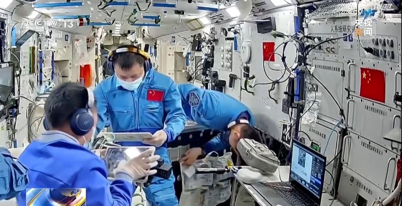 在站内设备检查维护与环境监测方面,神舟二十号乘组开展了空间应用低温装置在轨维护、冷凝水检查维护等工作。三名航天员还完成了眼压及眼底检查、无创心功能检查等多项医学检查,并利用神经肌肉刺激仪、骨丢失对抗仪等仪器设备积极对抗失重生理效应,在轨健康维护与保障始终在线。