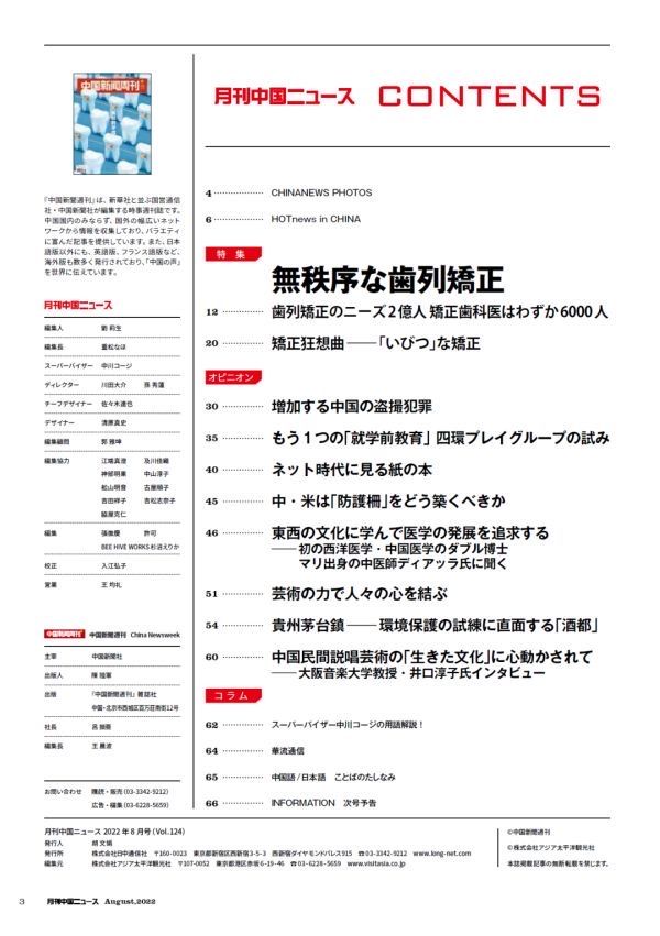 『月刊中国ニュース』2022年8月号の特集は「無秩序な歯列矯正」。