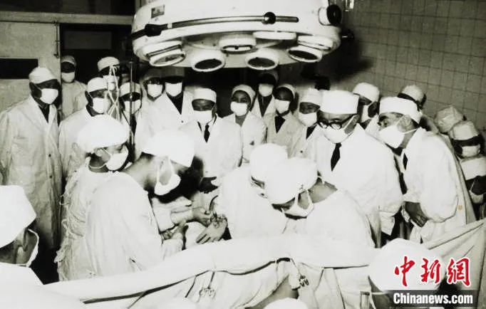 1972年,辛育龄团队接待访问团参观针麻肺切除手术。中日友好医院供图