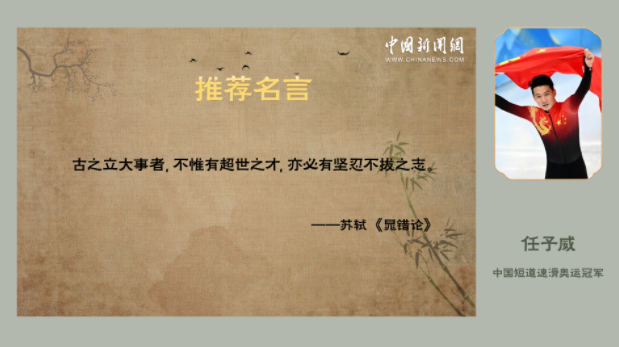 9月,告别暑期的喧嚣,迎着秋日的阳光,学子们又将步入校园,走进知识的海洋。中国新闻网近日联合马伯庸、任子威、六神磊磊和邵婷等文体大咖,分享伴随他们走向成功的座右铭,激励学子们扬帆起航。