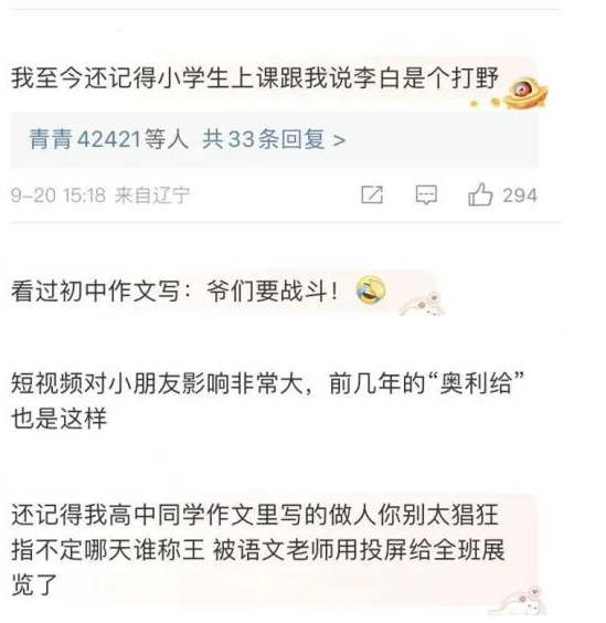 针对这件事,有网民认为,这是一件很严肃的事。“口头语不能当书面语!”“流行文化和严肃文学得有个区分”。也有网友认为,三年级的孩子,正常引导就好了。“三年级刚开始写作文的时候,最重要的是敢于下笔。”