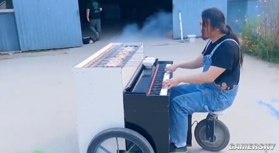 移动烧烤钢琴。(图/《月曜夜未央》视频截图)