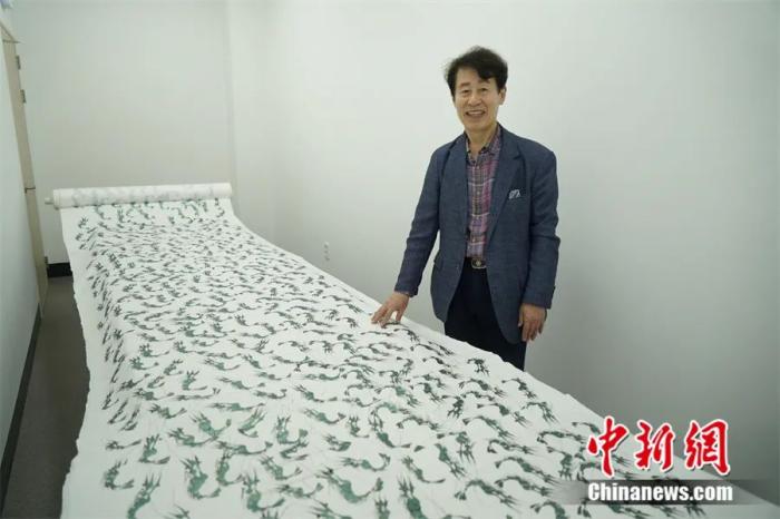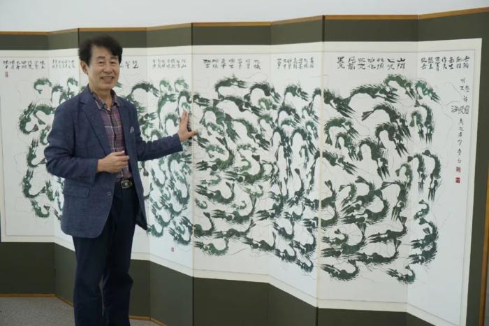 其实我创作万虾图很不容易,是很枯燥的挑战。当我迷茫的时候,我会想到齐白石先生的精神,会想把他的和谐思想继续表达出去。虽然我创作的时候齐白石先生不在我身边,但是他在无形中不断给我勇气,鼓励我完成这样一项挑战。也正像中国人所说的“不忘初心”,韩国人所说的“初志一贯”,靠着这种精神我坚持到了最后。