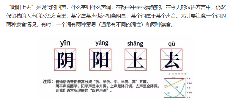 现代四声“阴阳上去”。(图/百度知道截图)
