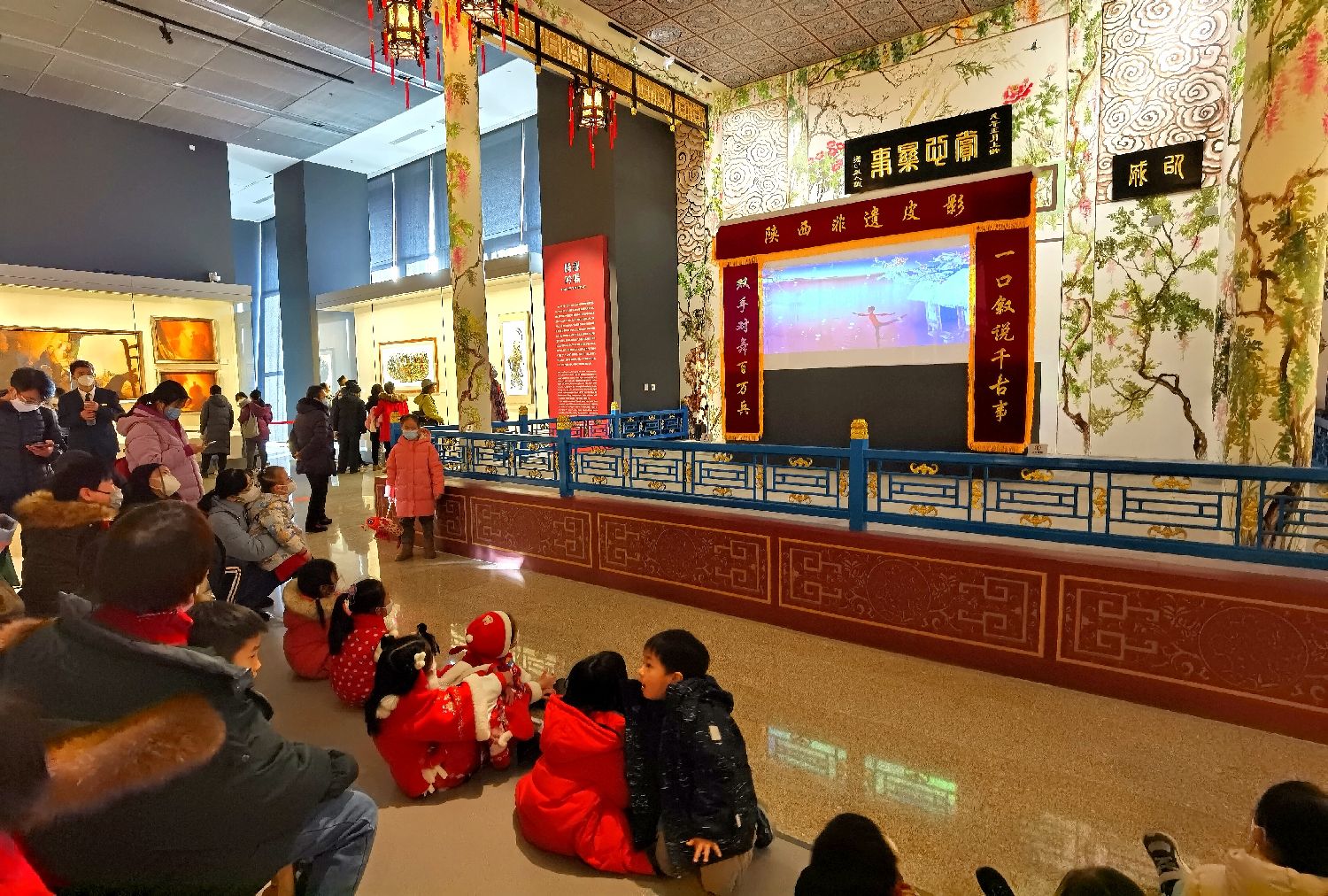 2023年1月24日,大年初三,在中国工艺美术馆·中国非物质文化遗产馆的“影戏人间:陕西非遗皮影展”展厅内,皮影戏台上正在上演中国工艺美术大师、陕西华州皮影制作技艺省级非遗传承人薛宏权创作的皮影芭蕾舞剧《喜舞迎春》。