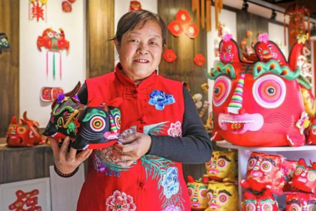 近日,在首届中国非物质文化遗产保护年会非遗大集展示现场可以看到,李惠莲正在缝制“小老虎”,她的展台前摆满了虎头帽、虎头鞋、十二生肖挂件等各种手工艺品,其作品主要以动物形象为主,处理细腻,用料考究,针脚匀称,疏密有致,具备观赏性和实用性。