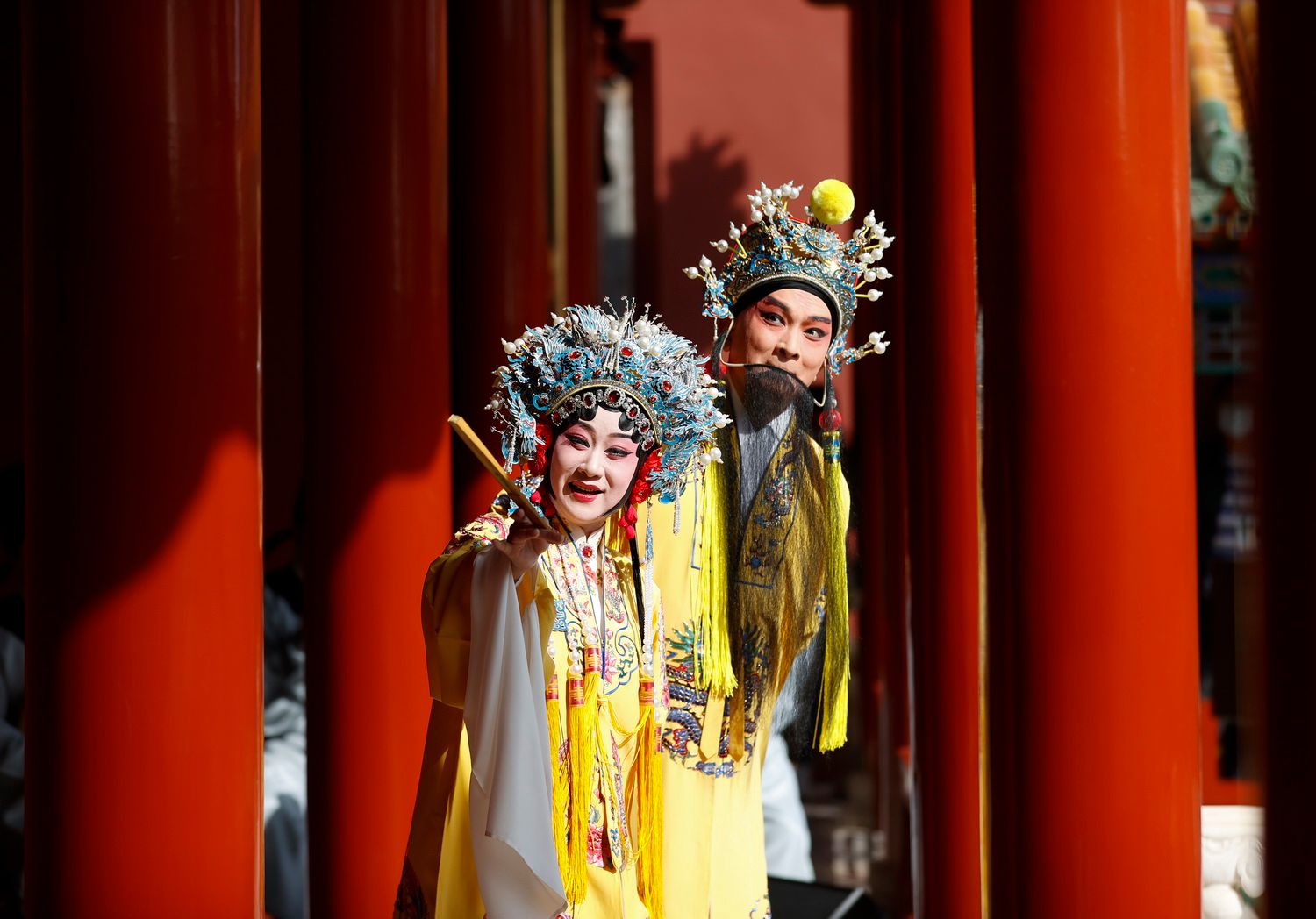 3月13日,上海昆剧团演出故宫博物院藏戏曲剧目片段。“梅花奖”得主、表演艺术家黎安、国家一级演员余彬现场表演了《长生殿•小宴》选段。(图/中新社)