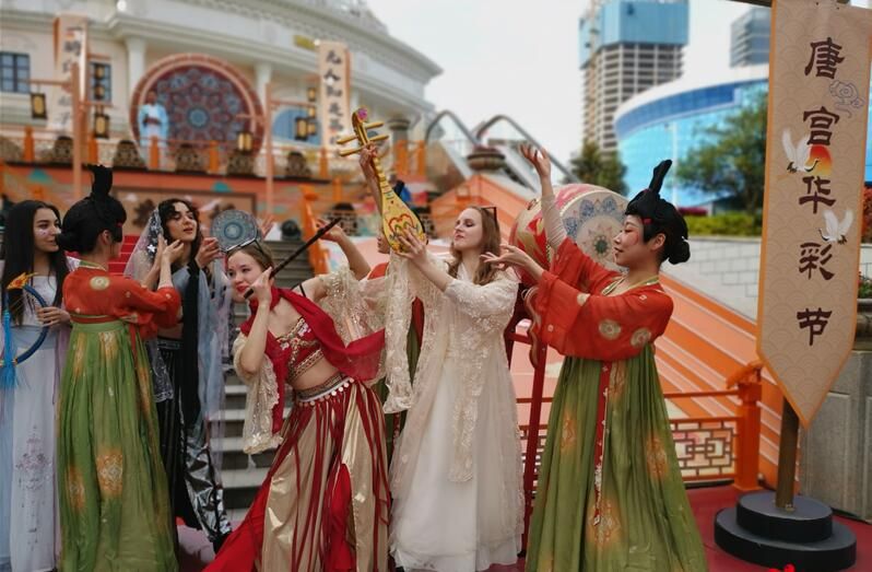 近日,华中师范大学和武汉科技大学的16名外国留学生齐聚武汉欢乐谷,身着唐制传统服饰,共同感受独特的唐朝文化魅力。来自俄罗斯、巴基斯坦、塔吉克斯坦、泰国、缅甸、坦桑尼亚、赞比亚、突尼斯等国家的外国留学生们畅游欢乐谷,观赏唐风表演、学习唐宫廷舞,和“唐宫小姐姐”一起穿越,梦回唐朝。