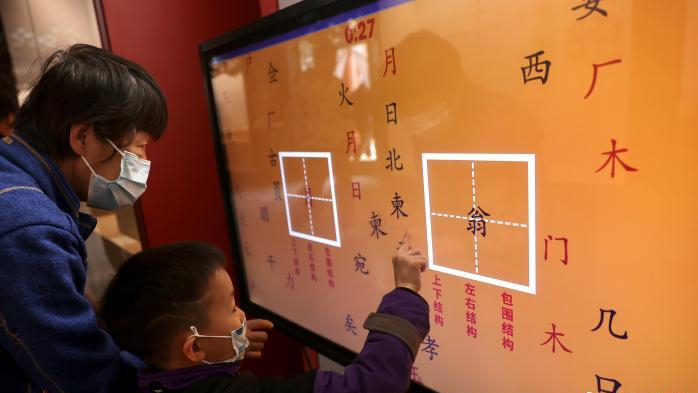 图为游客在“形意万千——汉字文化大观展”上互动。(图/中新社)