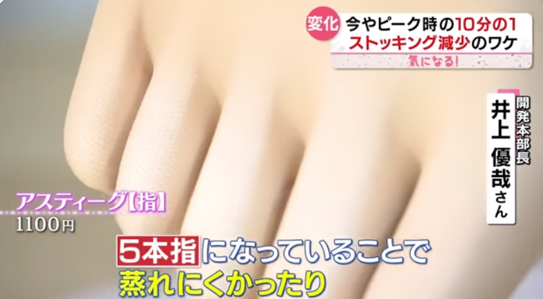 据报道,以连裤袜为主的袜类用品销售额已经减少了约40%。厂商也一直在探索突破,比如打造主打舒适性来激发消费者的消费欲望。五趾丝袜也横空出世,不仅不容易出汗,也为了更好的让双脚发力,腿部线条也会更加唯美。此外,还新研发上市了方便女性穿着连裤袜时,上厕所比较麻烦的款型,不用再经历着急如厕的尴尬。