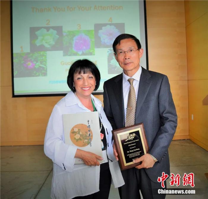 王国良:2016年,我受邀造访美国加利福尼亚州亨廷顿图书馆、艺术馆和植物园。该奖遴选委员会根据我多年在玫瑰、月季等领域的学术研究成果和影响,为我颁发了“世界玫瑰大师奖”。