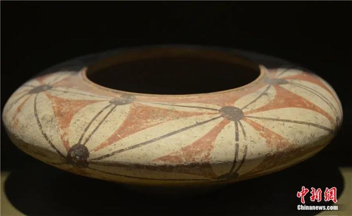 五瓣花纹彩陶盆,邳州大墩子文化遗址出土(南京博物院藏)。(受访者供图)