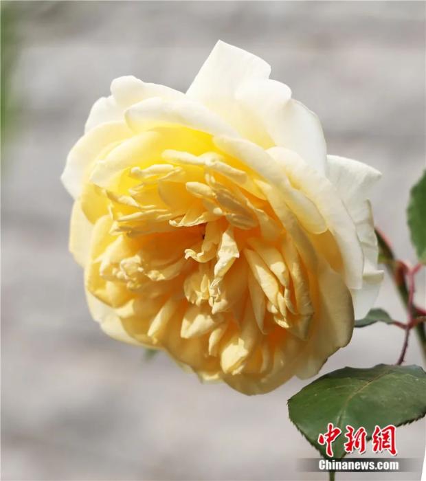 中国宋代藤本月季名种黄宝相,初开浅粉色,渐呈米黄色,花心带有红晕。盛开时则为纯金黄色,犹如金箔一般熠熠生辉。(受访者供图)