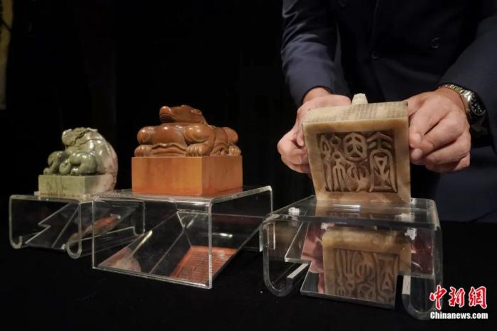 香港苏富比展示的中国明清朝御玺三方。(图/中新社)