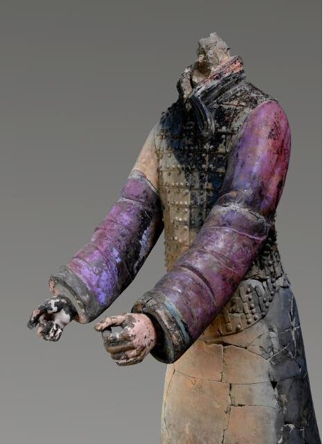 兵马俑身上鲜艳的色彩。(图/中新网)