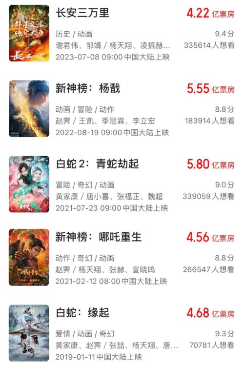由日本动漫《灌篮高手》改编的同名电影,在中国影院上映90多天,票房超6.5亿元(人民币,下同)。如今,一部中国国产动漫电影正将这股动漫热推上更高峰。截至本月18日,来自中国票房数据平台猫眼专业版数据显示,上映仅11天的《长安三万里》票房已超过7.74亿元。