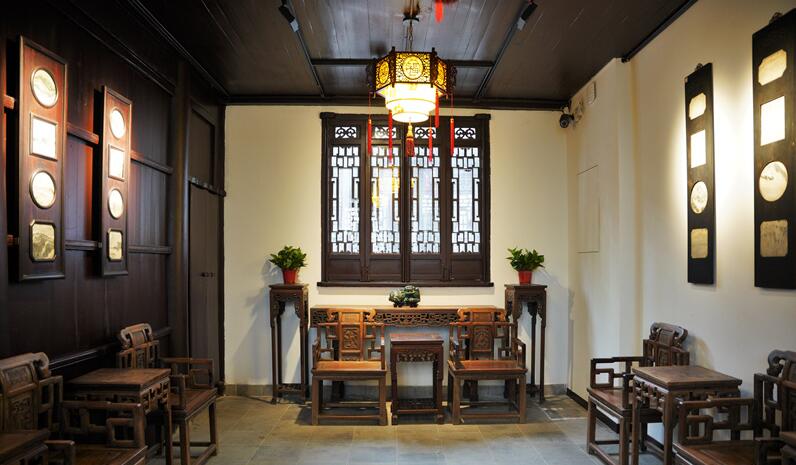 在展厅中漫游,你还能看到甘家会客厅和书房的复原陈列,讲究的桌、椅、书架,尽显品位和底蕴。讲解员介绍,甘家以“友恭”精神作为家风,非常崇文重教,经常会有名人大家出入。“复原的会客厅就是男主人接待客人的正式场所,规制非常严谨。”