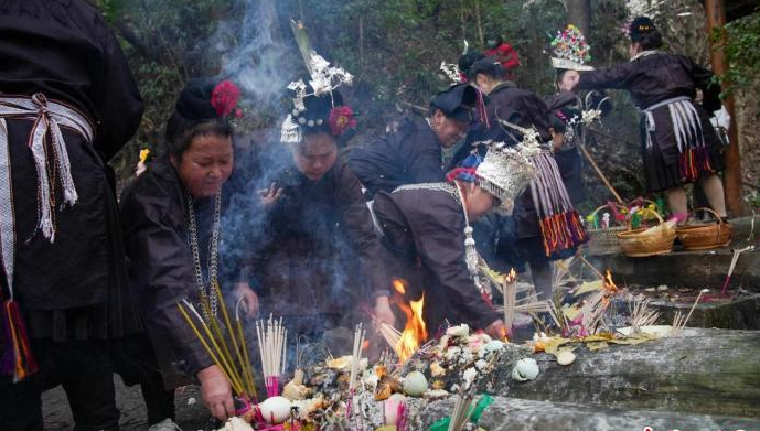 图为贵州省台江县苗族同胞进行“祭桥”仪式。(图/中新网)