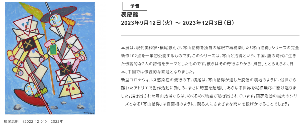 “横尾忠则寒山百得”展览预告。(图/东京国立博物馆官网截图)