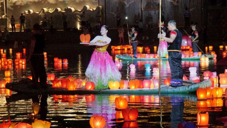 北京时间8月26日晚,广西桂林市资源县举办第二十七届民族传统河灯歌节,一盏盏色彩艳丽、造型各异的河灯沿江漂放,万盏河灯漂在资江的场景,犹如“银河”洒落人间。