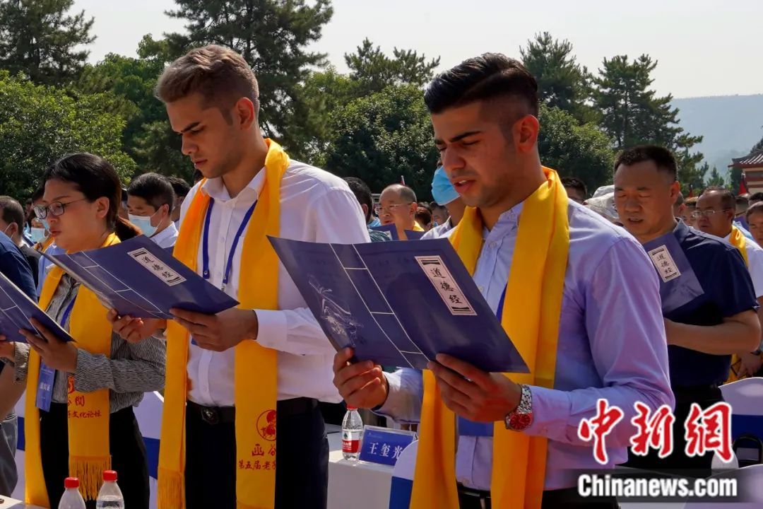 外国嘉宾在“第五届老子文化论坛”诵读《道德经》。(图/中新网)
