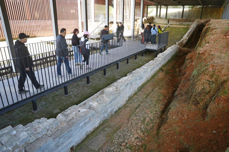 19日,游客参观江西龙虎山大上清宫遗址。(图/中新社)