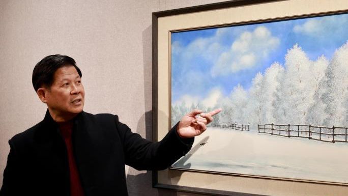 “这样的艺术形式蕴含着中国国画的韵味,同时又结合西方油画的色彩,别具一格。”柳州市绘画爱好者杨俏如参展时表示。