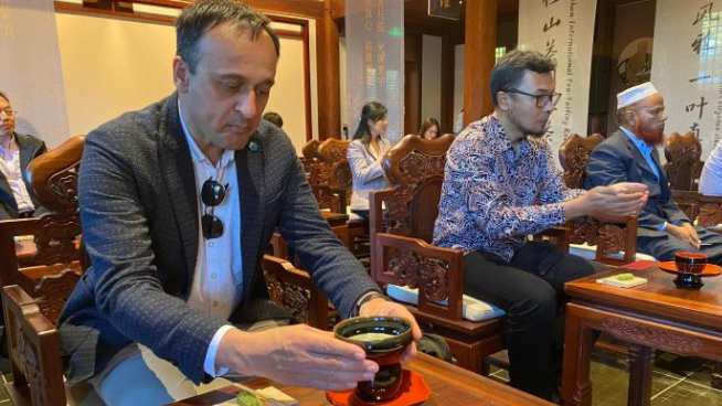 “径山茶宴是非常有特色和意义的仪式,它赋予了茶和文化之间的联系,这意味着人们看到的茶不仅仅是一种饮品,更是一种‘精神产品’,它也让热爱茶文化的人们相聚在一起。”联合国粮食及农业组织驻巴基斯坦代表处副代表Farrukh体验径山茶宴后说。