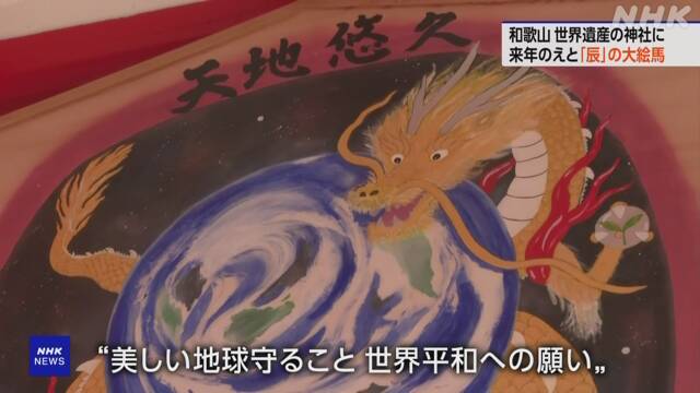 绘画作者、熊野速玉大社的上野显宫司表示:“今年除了新冠疫情之外,还发生了各地冲突。我希望这幅绘马能守护地球,带来幸福。希望人们能克服战争和灾害的苦难,迎来来年龙年美好的一年。