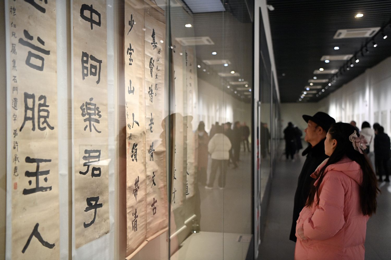 6日,观众在兰州市博物馆参观“文以载道联接古今——兰州天水百幅馆藏明清楹联展”。(图/中新社)