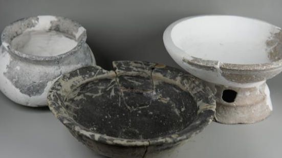 陈王遗址河姆渡文化墓葬随葬陶器。(图/中新网)