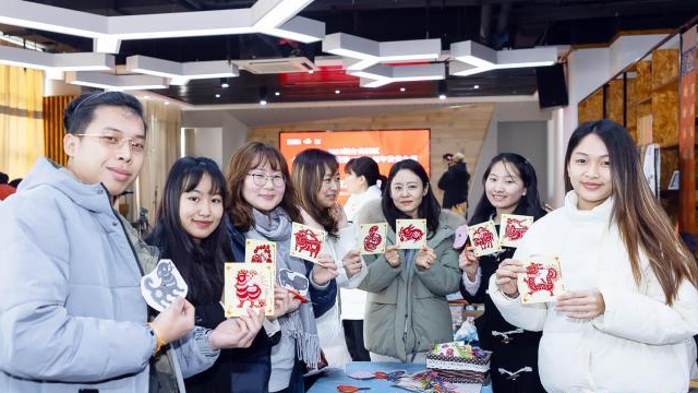 与此同时,红陶传承人、糖画传承人、剪纸传承人、葫芦烙画传承人、扎染传承人、杠子头火烧传承人等,纷纷向留学生们讲解非遗手作。留学生们通过观茶艺、学剪纸、品美食,“沉浸式”体验中国非遗项目的魅力。