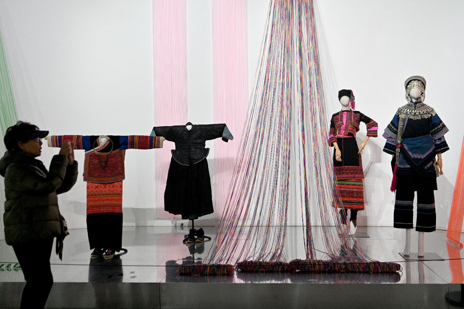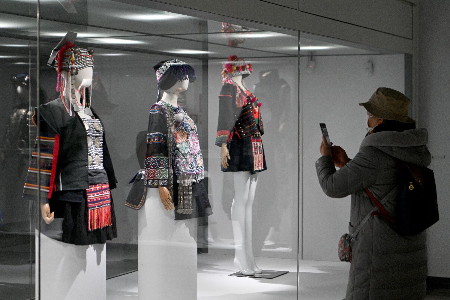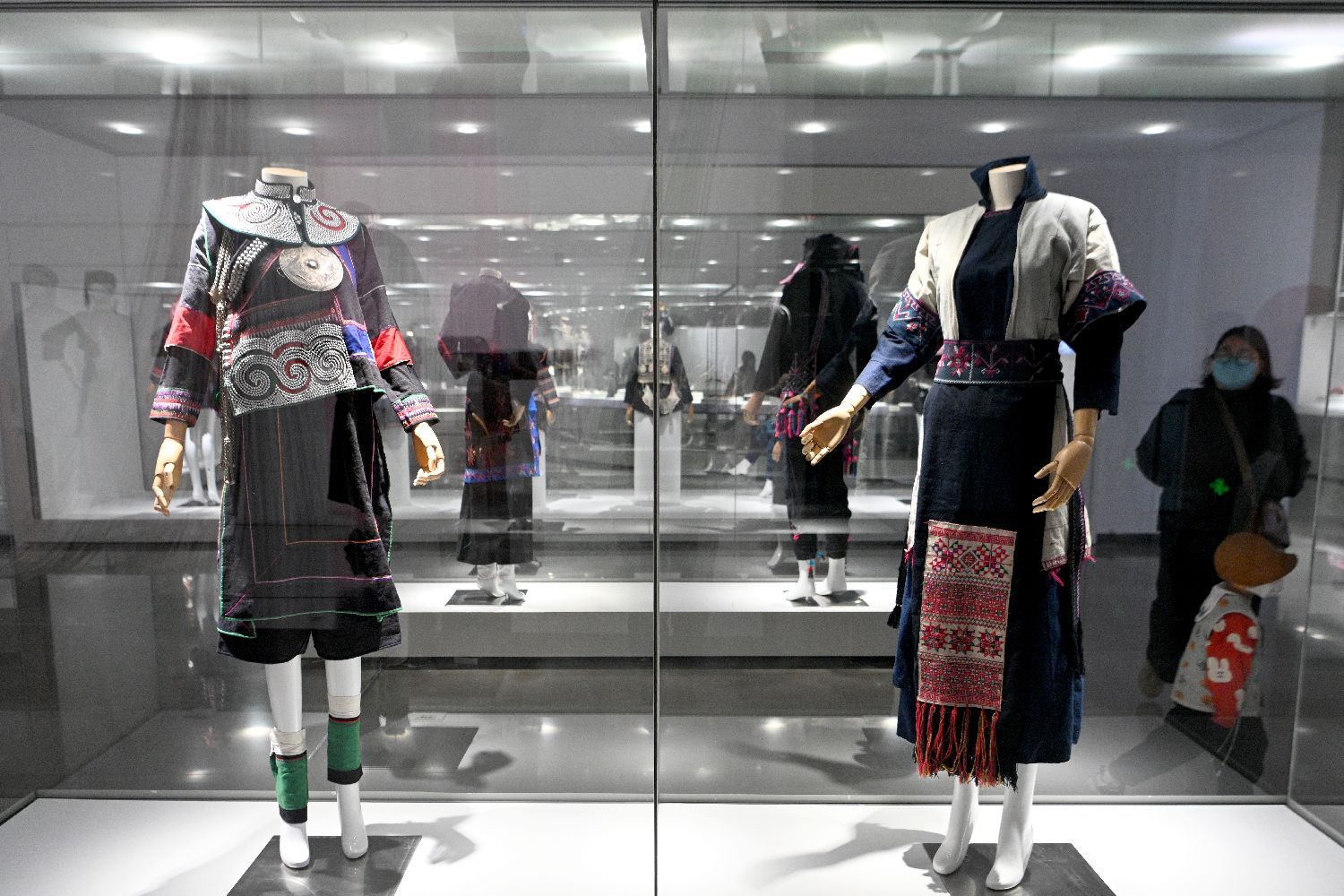近日,展览中的哈尼族支系爱尼人婚礼装吸引参观者。(图/中新社)