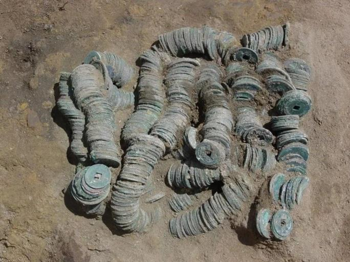 集宁路古城遗址钱币出土原状。(图/内蒙古自治区文物考古研究院)