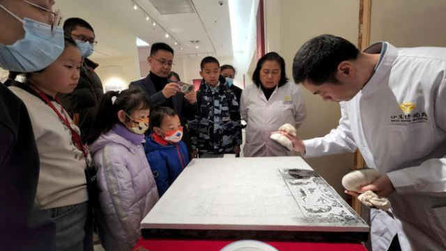 现场展示传拓技艺,吸引观众围观欣赏。(图/中新网)
