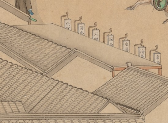 《乾隆南巡图》第一卷局部,招牌上写着“燕窝”“海参”“火腿”“风鱼”“皮蛋”“海菜”“南酒”。(图/北京《中国青年报》)